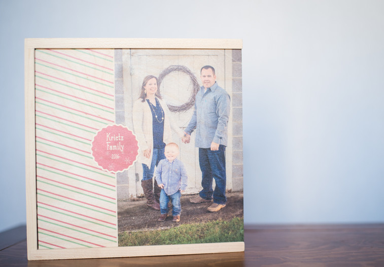 Wooden boxes are available with prints in several sizes: 4"x4", 4"x6", and 5"x7"